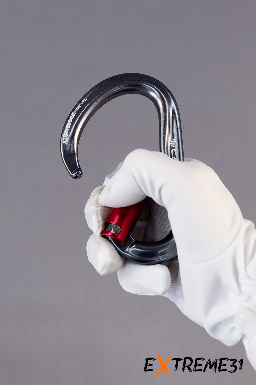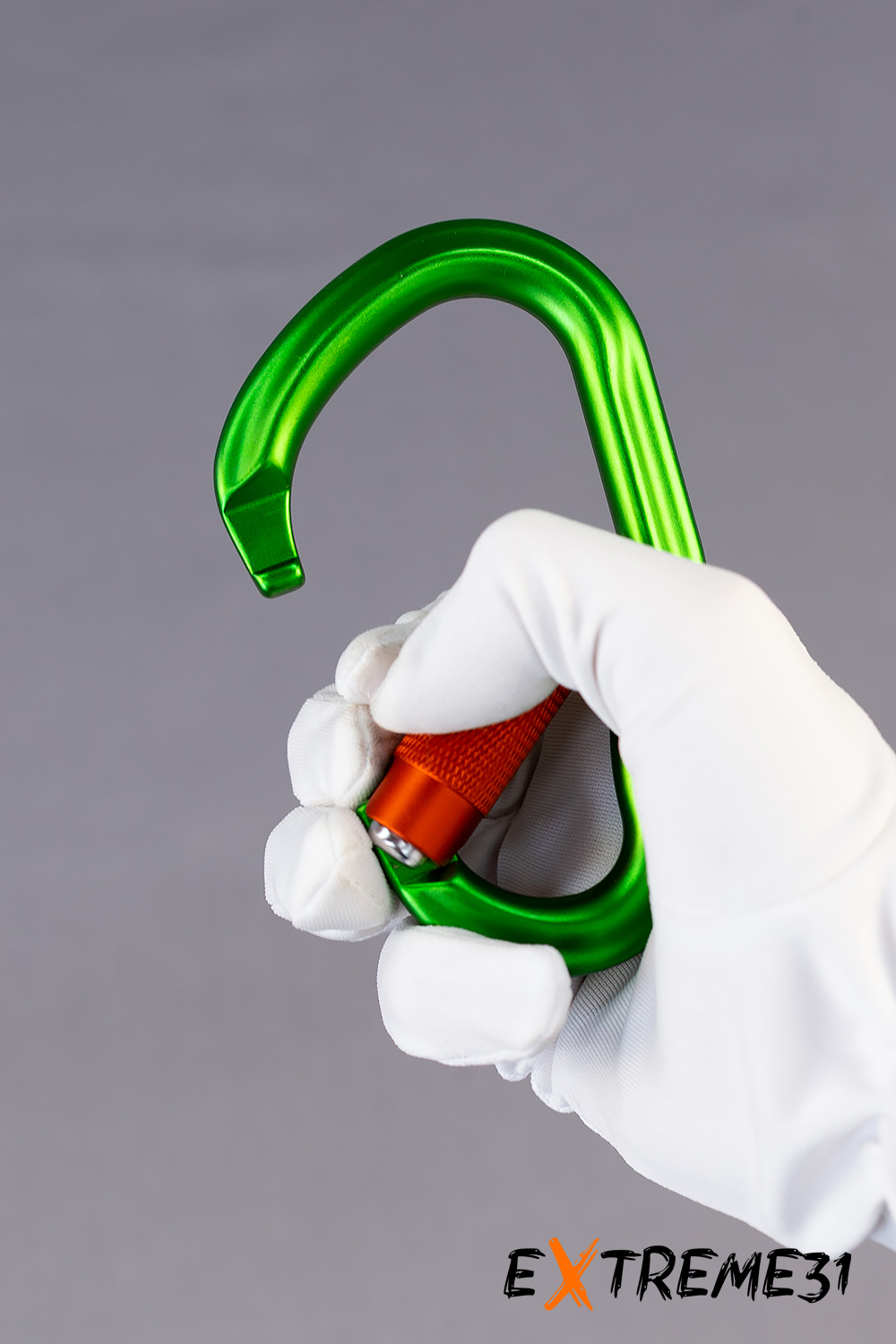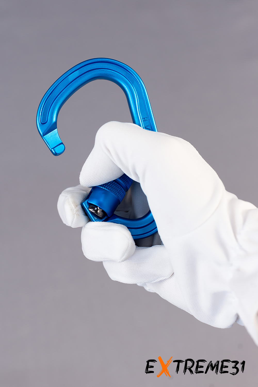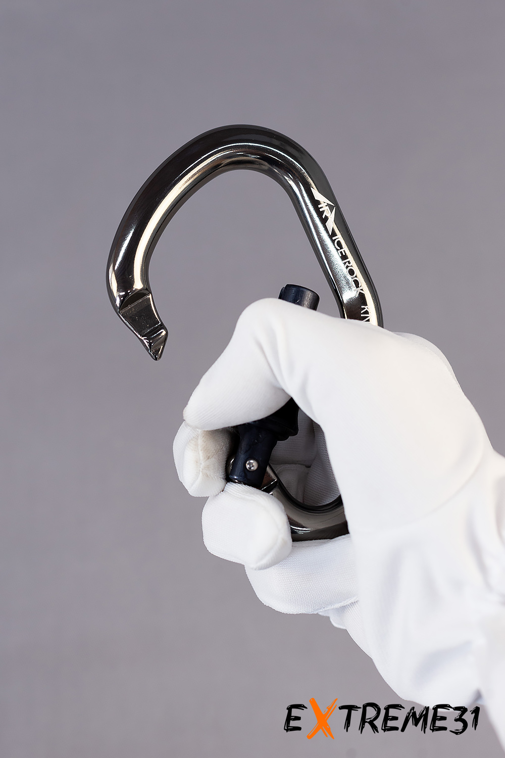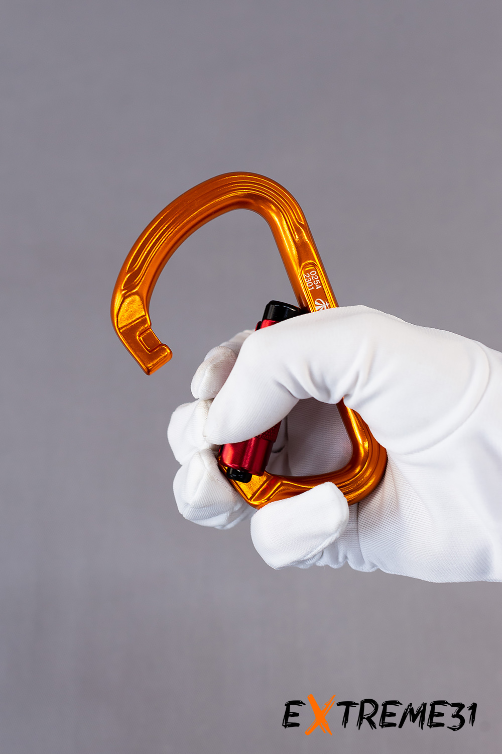 Легко открывается простым движением одного пальца. Эргономичная форма карабина - хорошо ложится в руку, обеспечивает оптимальную работу с карабином. Большое раскрытие облегчает пристегивание к толстым тросам.