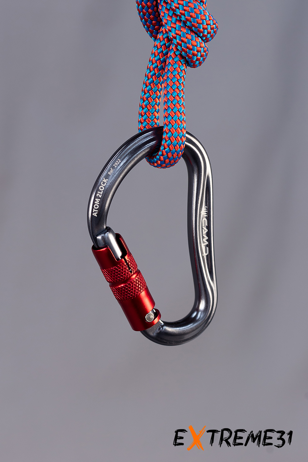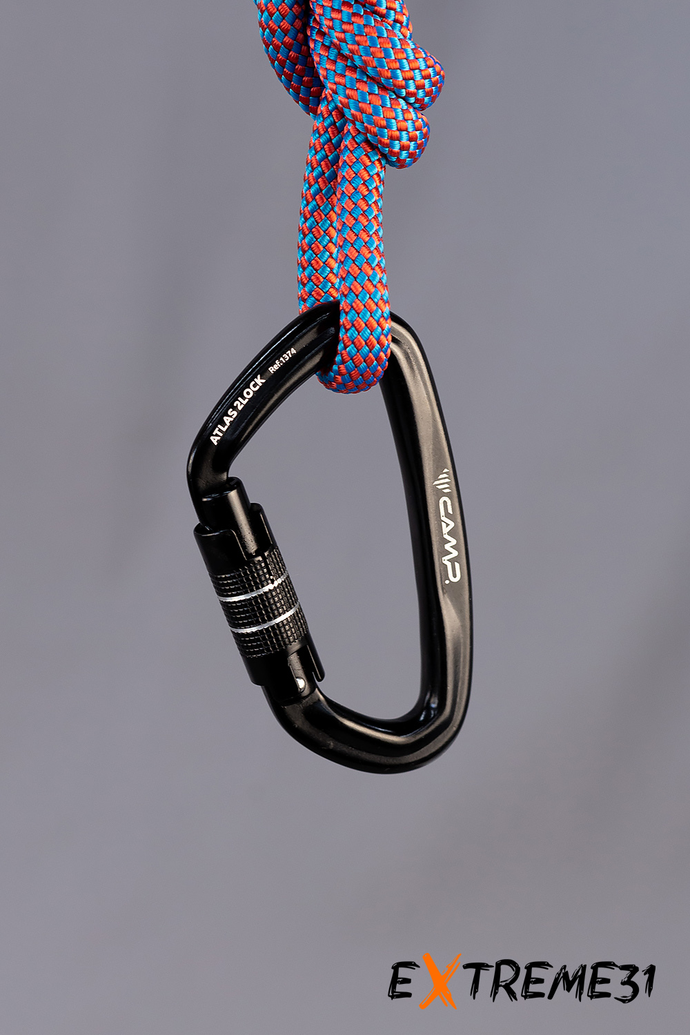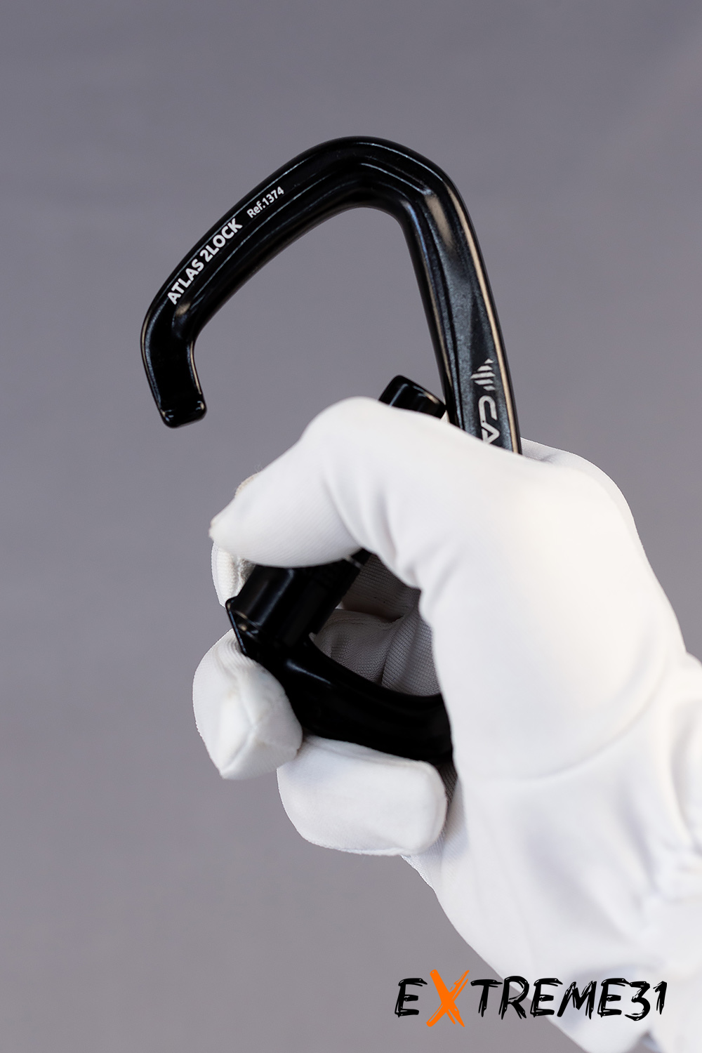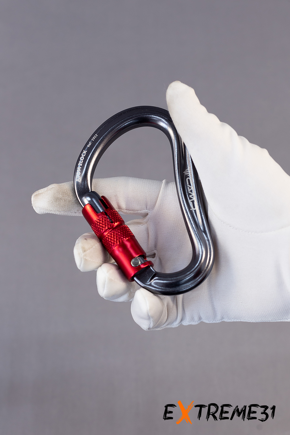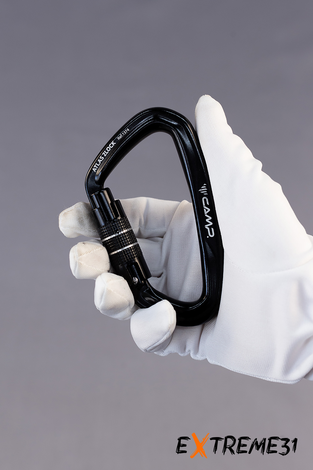 Карабин CAMP Atlas 2LOCK с автоматической муфтой (2 движения) - такой же прочный, как и стальные карабины, но с гораздо меньшим весом.