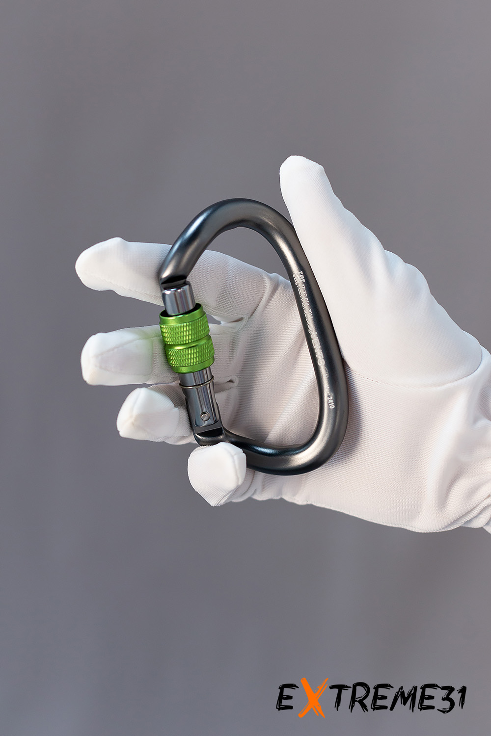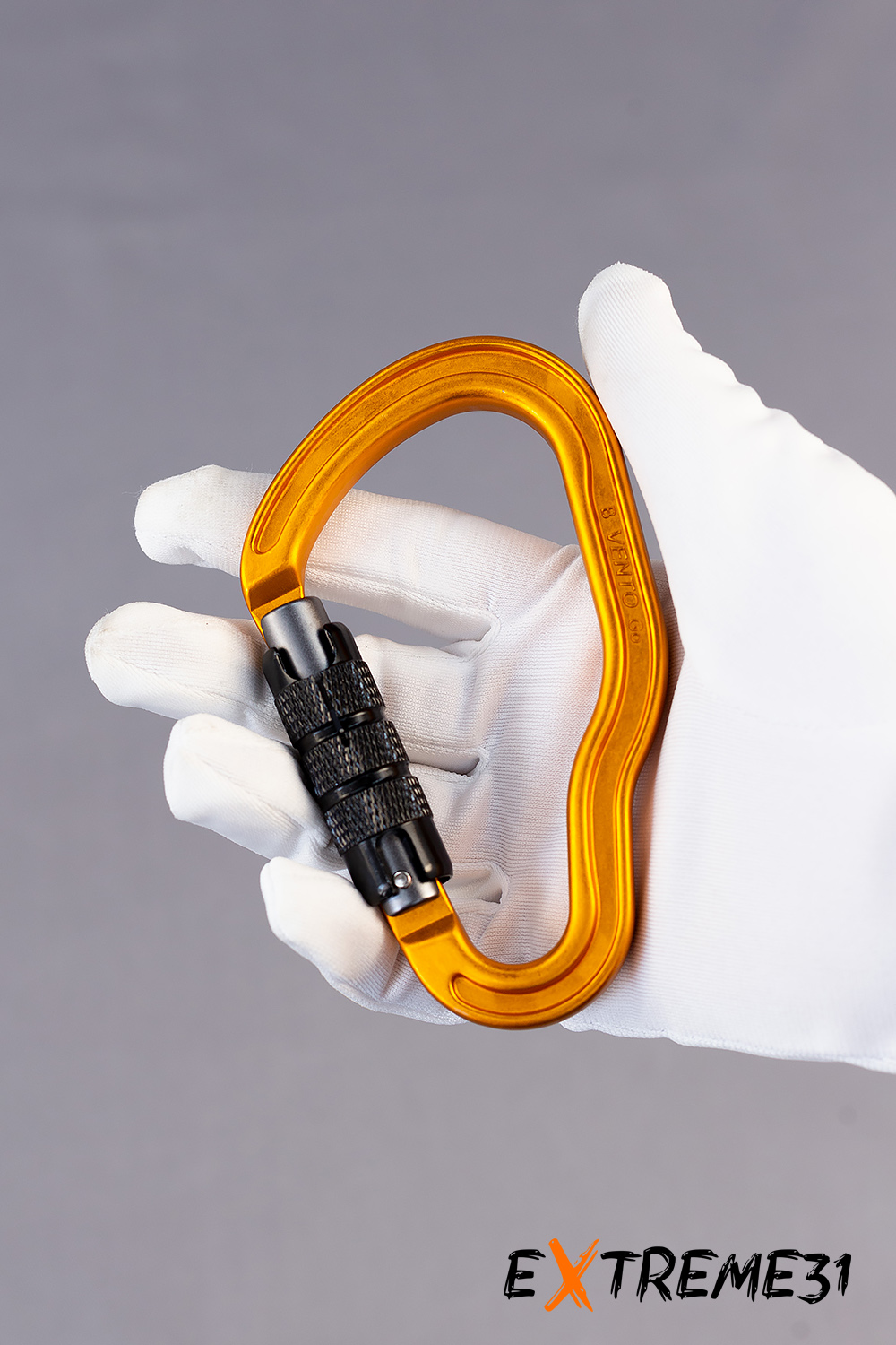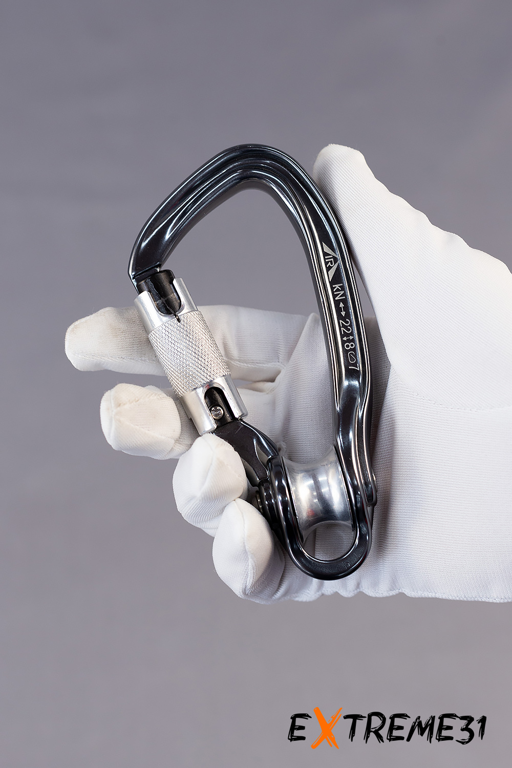 Стальной грушевидный карабин с системой кейлок исключает риск зацепления карабина за петли узлов, элементы одежды и снаряжения. Большое раскрытие позволяет одновременно закрепить на нем значительное количество элементов снаряжения и пристегнуть его к большим анкерным точкам.