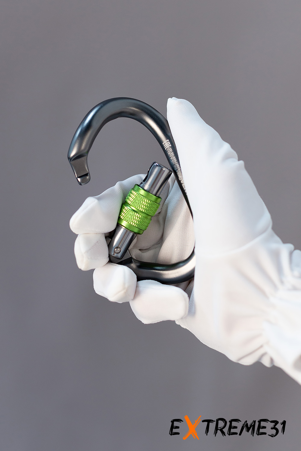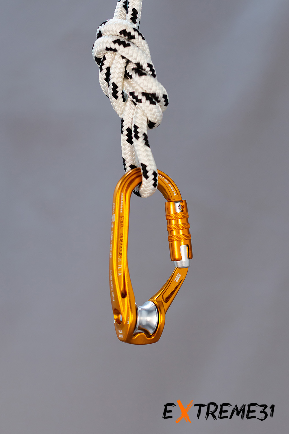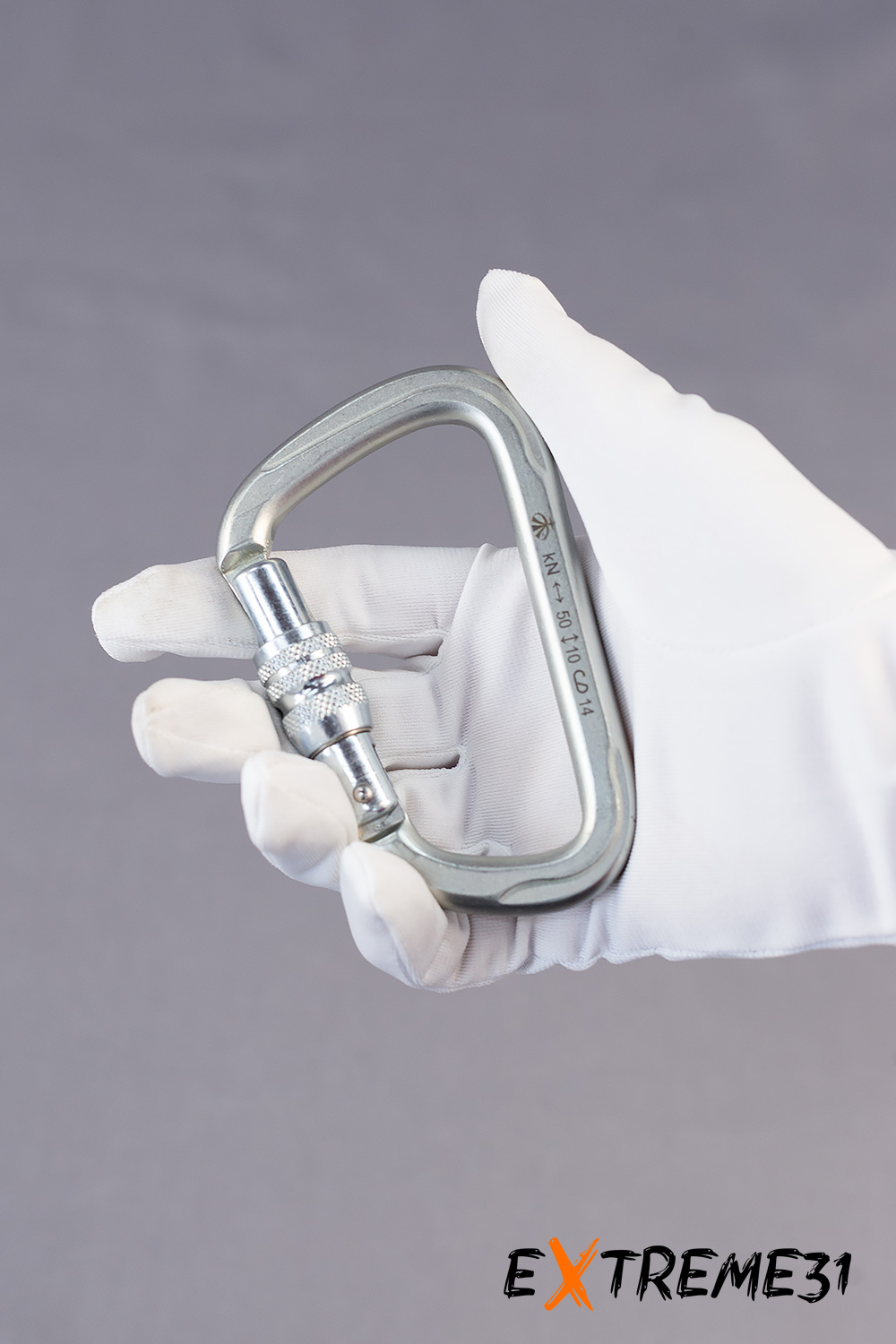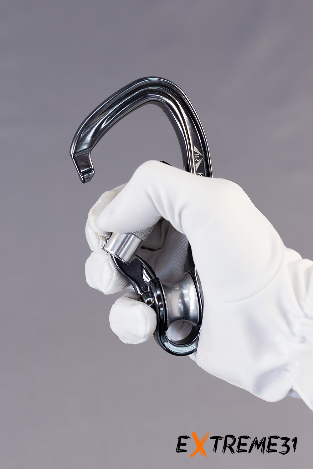 Стальной грушевидный карабин с системой кейлок исключает риск зацепления карабина за петли узлов, элементы одежды и снаряжения. Большое раскрытие позволяет одновременно закрепить на нем значительное количество элементов снаряжения и пристегнуть его к большим анкерным точкам.