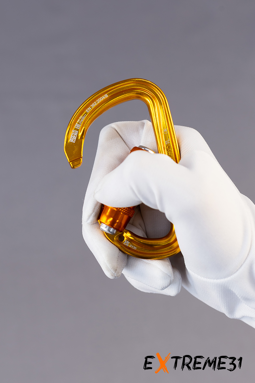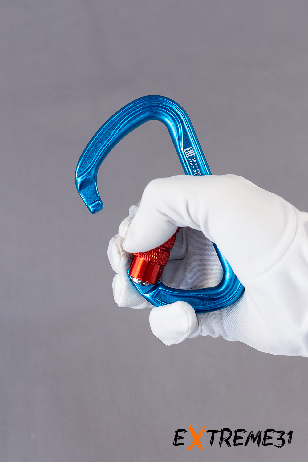 Специальный карабин с изогнутым на 90 гр. корпусом для работы с устройствами, когда их нужно развернуть в другую плоскость (зажимы, страховочные устройства, блок-ролики. Выполнен из алюминиевого сплава, что обеспечивает его незначительную масс