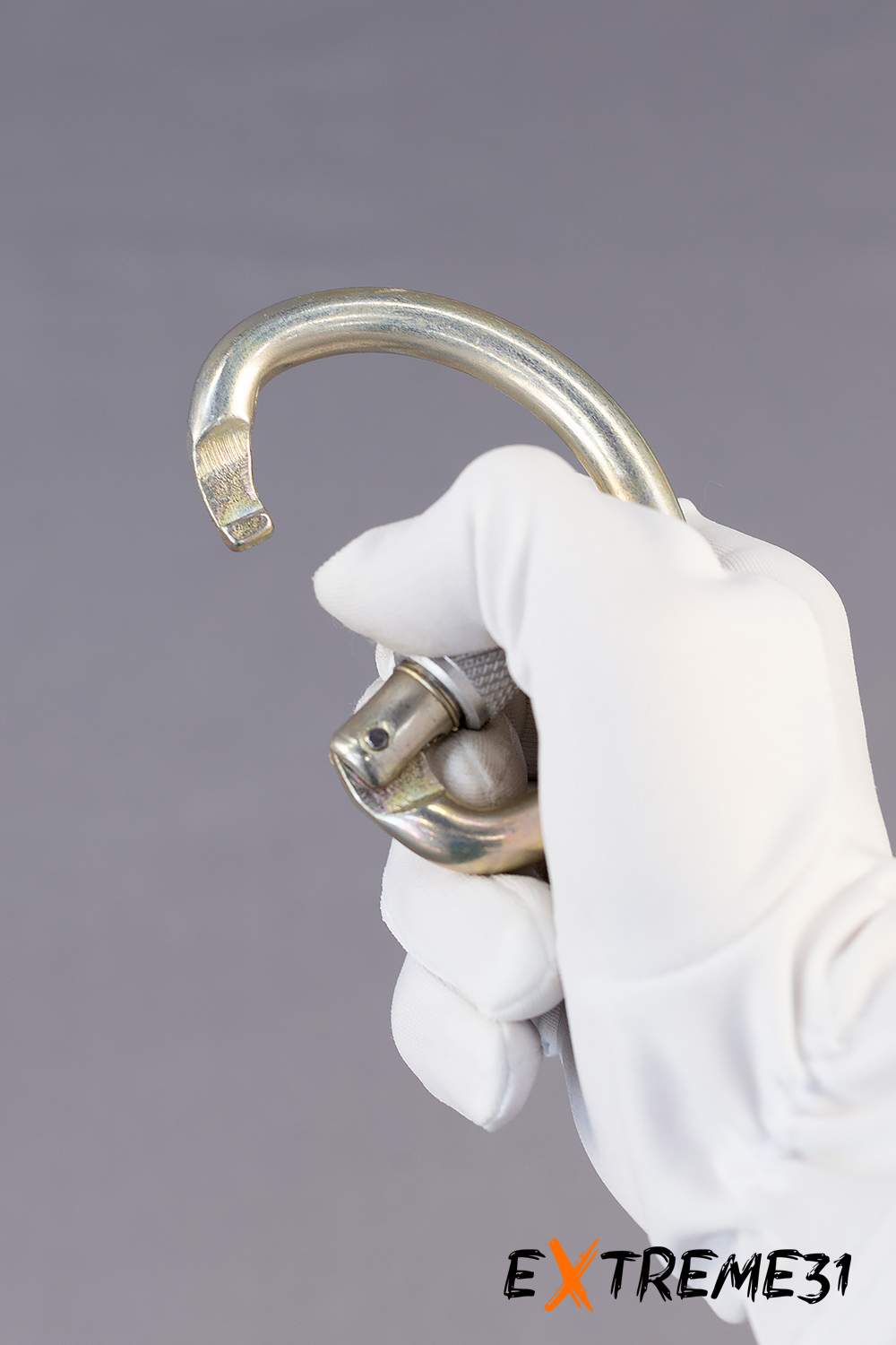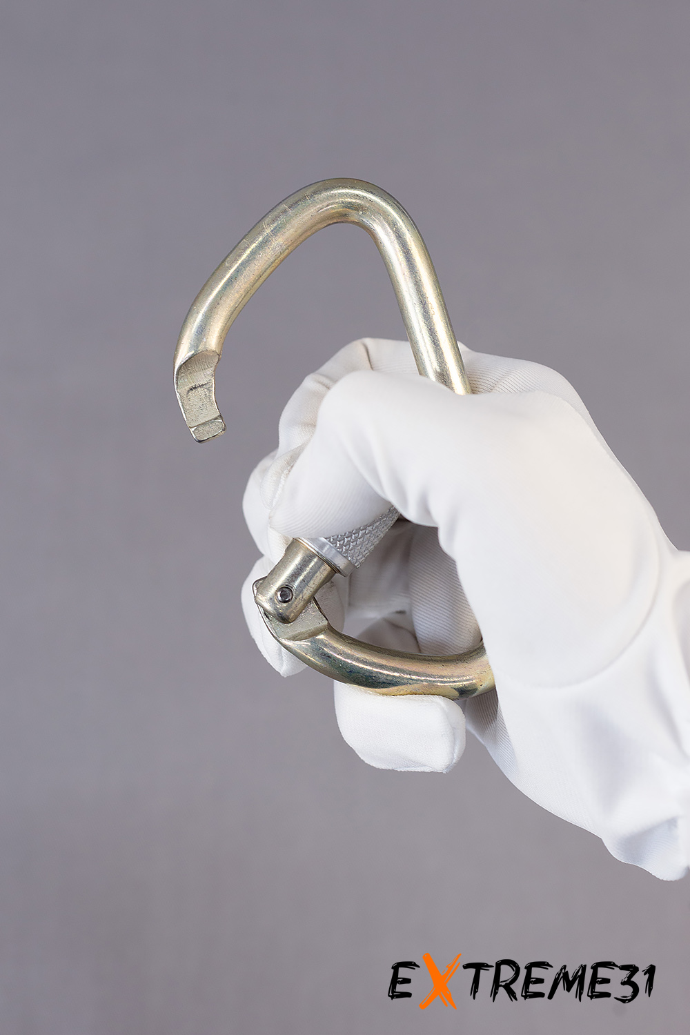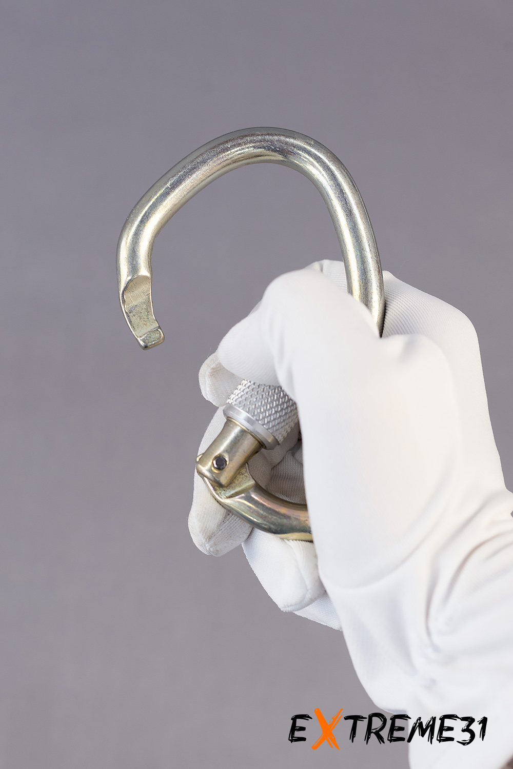 Карабин «Гусь» с автоматической байонетной муфтой для использования на усах самостраховки. Форма карабина обеспечивает удобство использования.