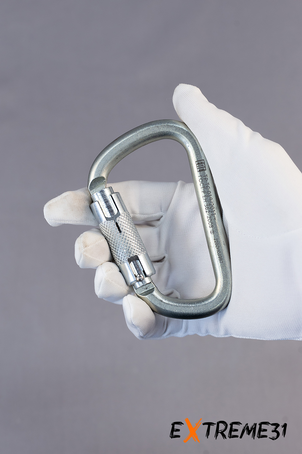 Карабин Стальной ЛЮКС с муфтой. D-образная форма карабина позволяет ему выдерживать максимальные нагрузки и применять его для широкого спектра задач: организации самостраховки, станций, присоединения страховочных устройств и т.д.