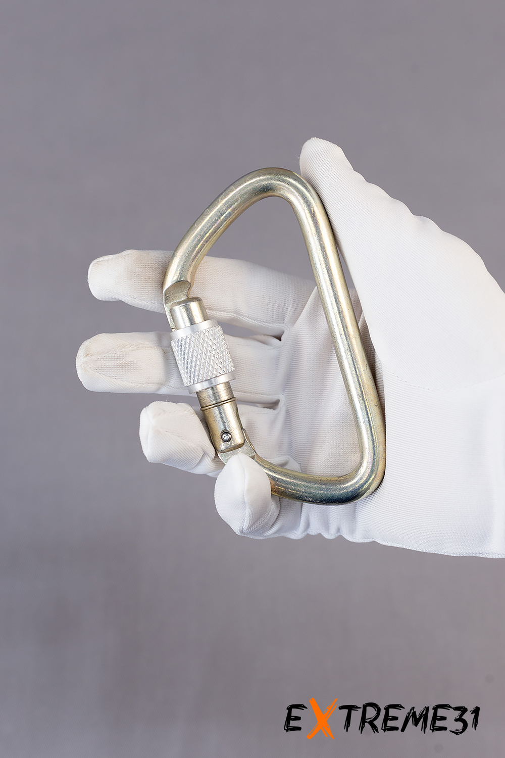 Треугольный стальной карабин благодаря компактному размеру очень удобен в использовании со спусковыми устройствами. За счет формы карабина снижается риск его неправильной нагрузки.