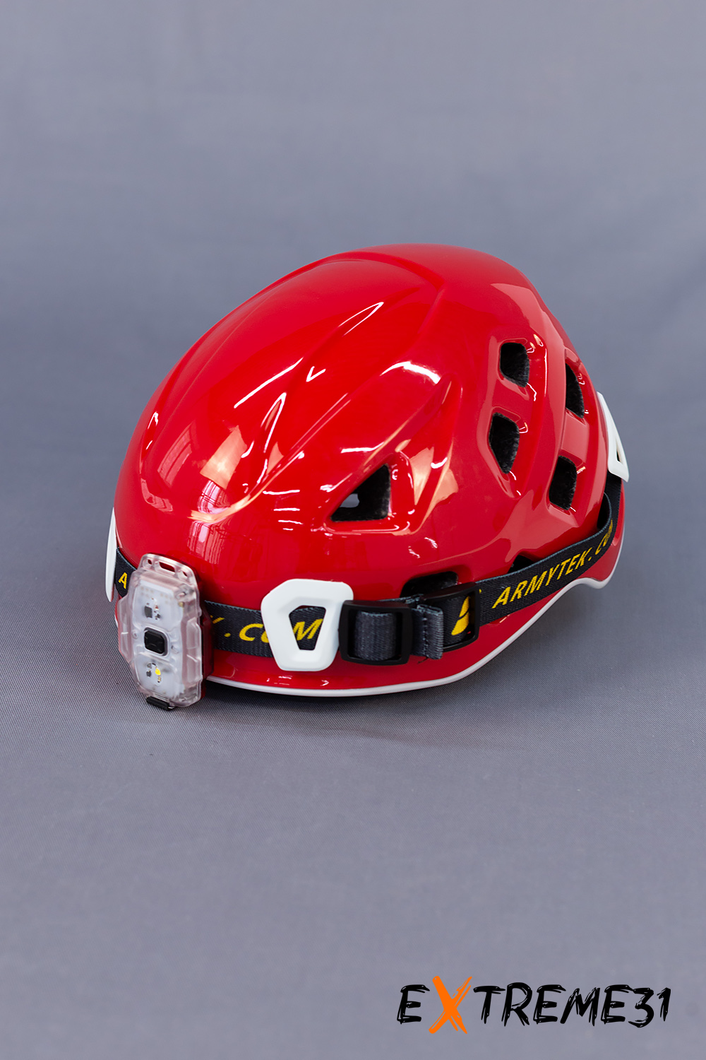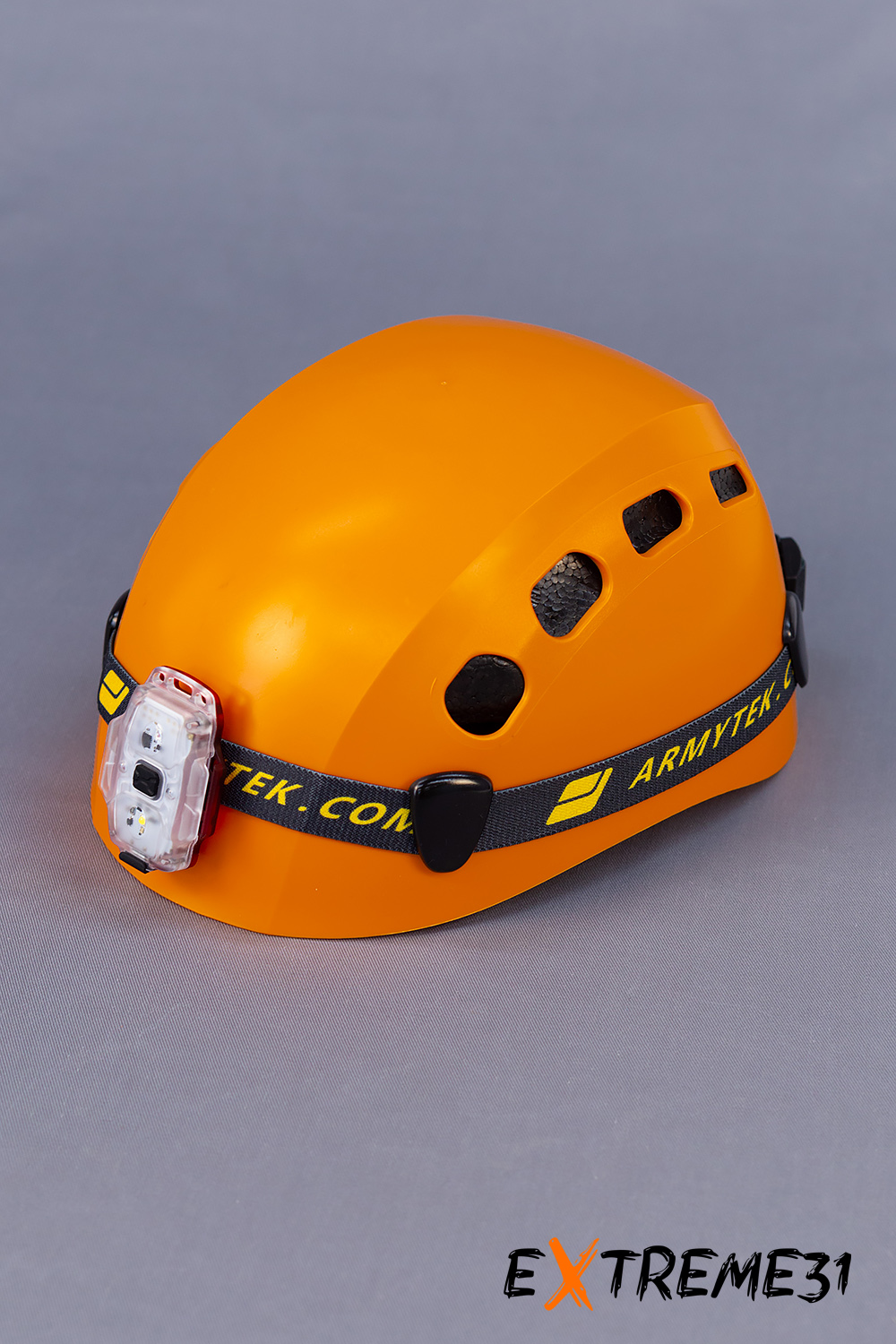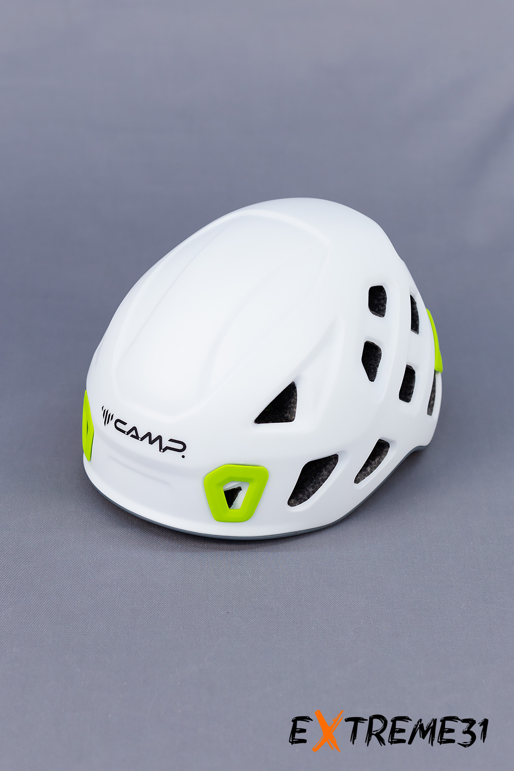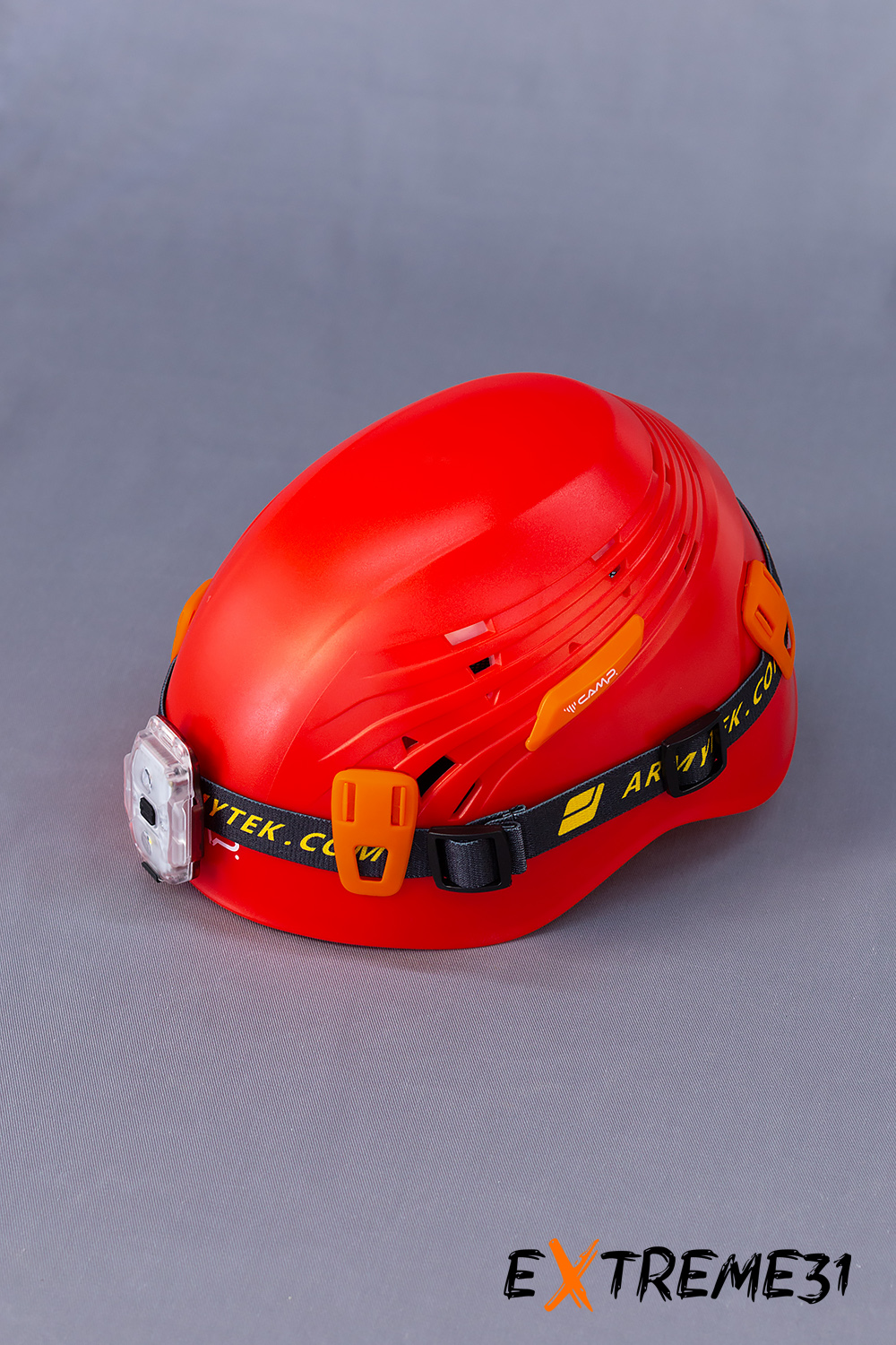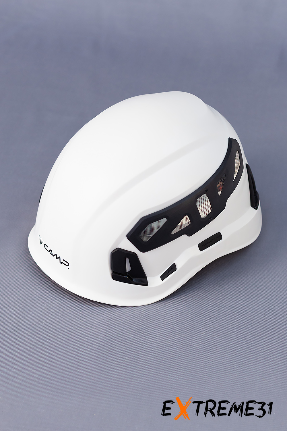 11 вентиляционных отверстий позволяют использовать каску в течение длительного времени. Корпус каски снабжен 4 клипсами для крепления налобного фонаря.