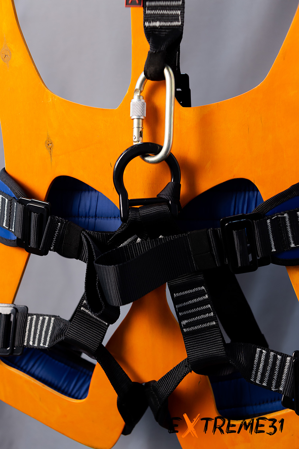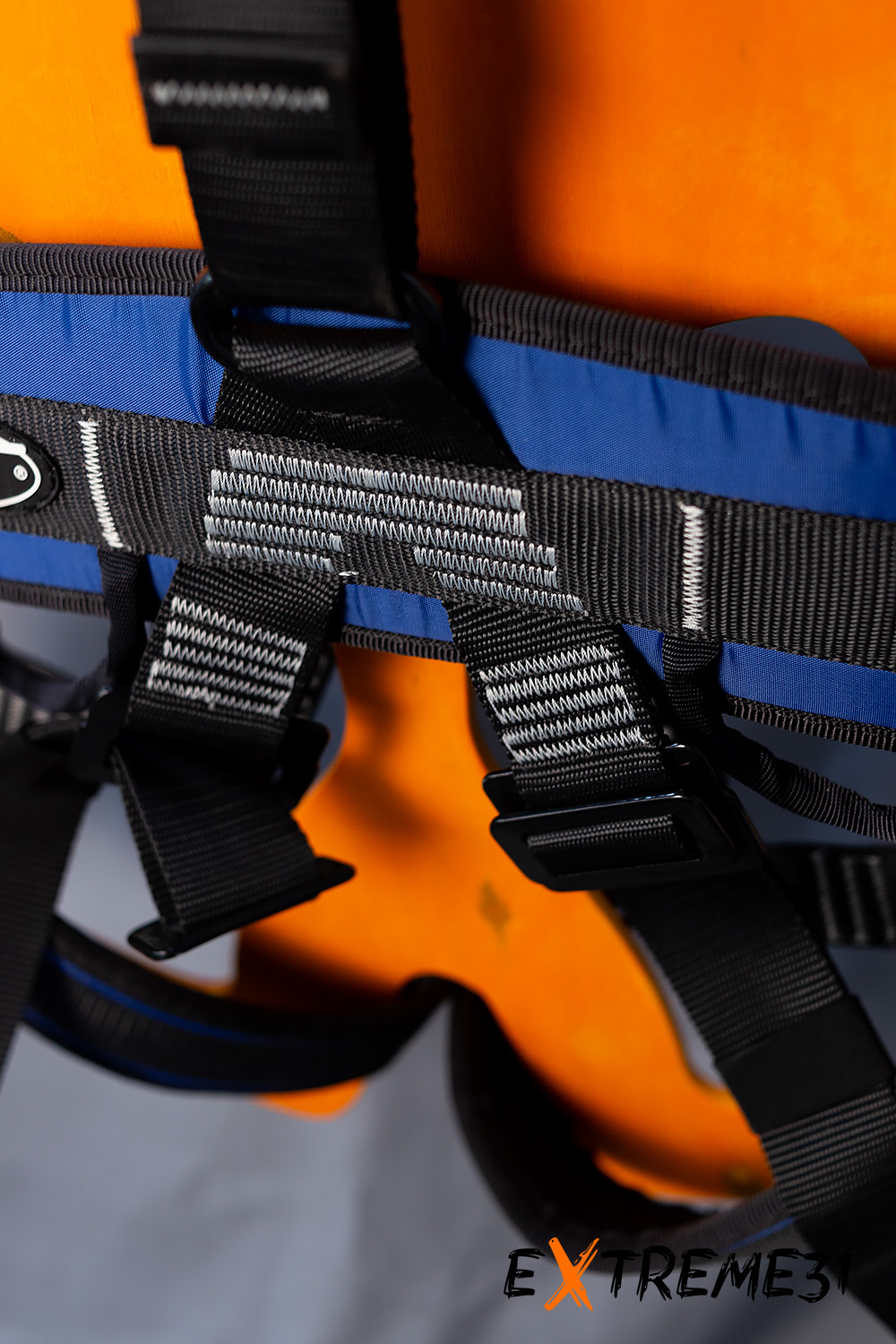 Имеется 1 страховочная точка на спине, а также 4 точки для удержания и позиционирования: две боковые, одна сзади на поясе и одна брюшная. Последняя удобна для использования в системах канатного доступа.