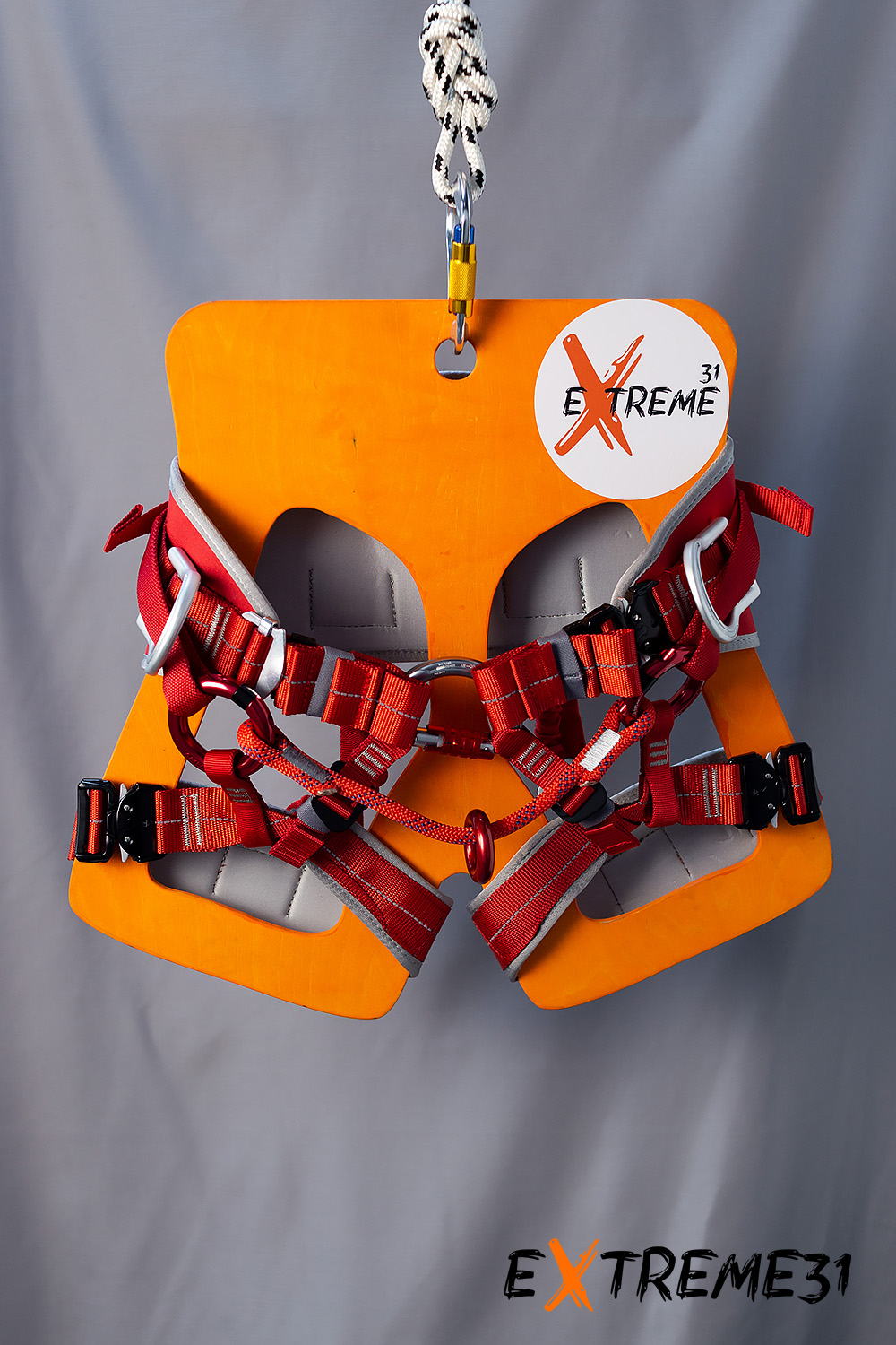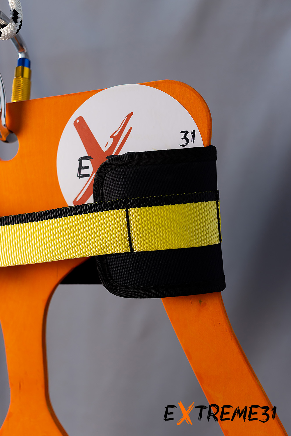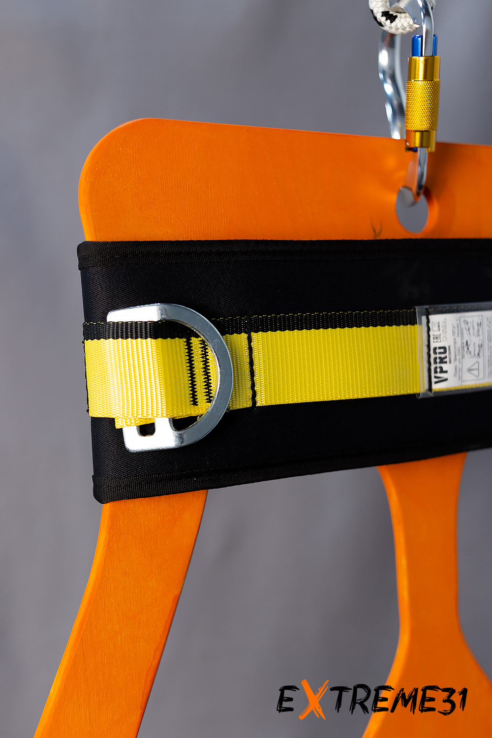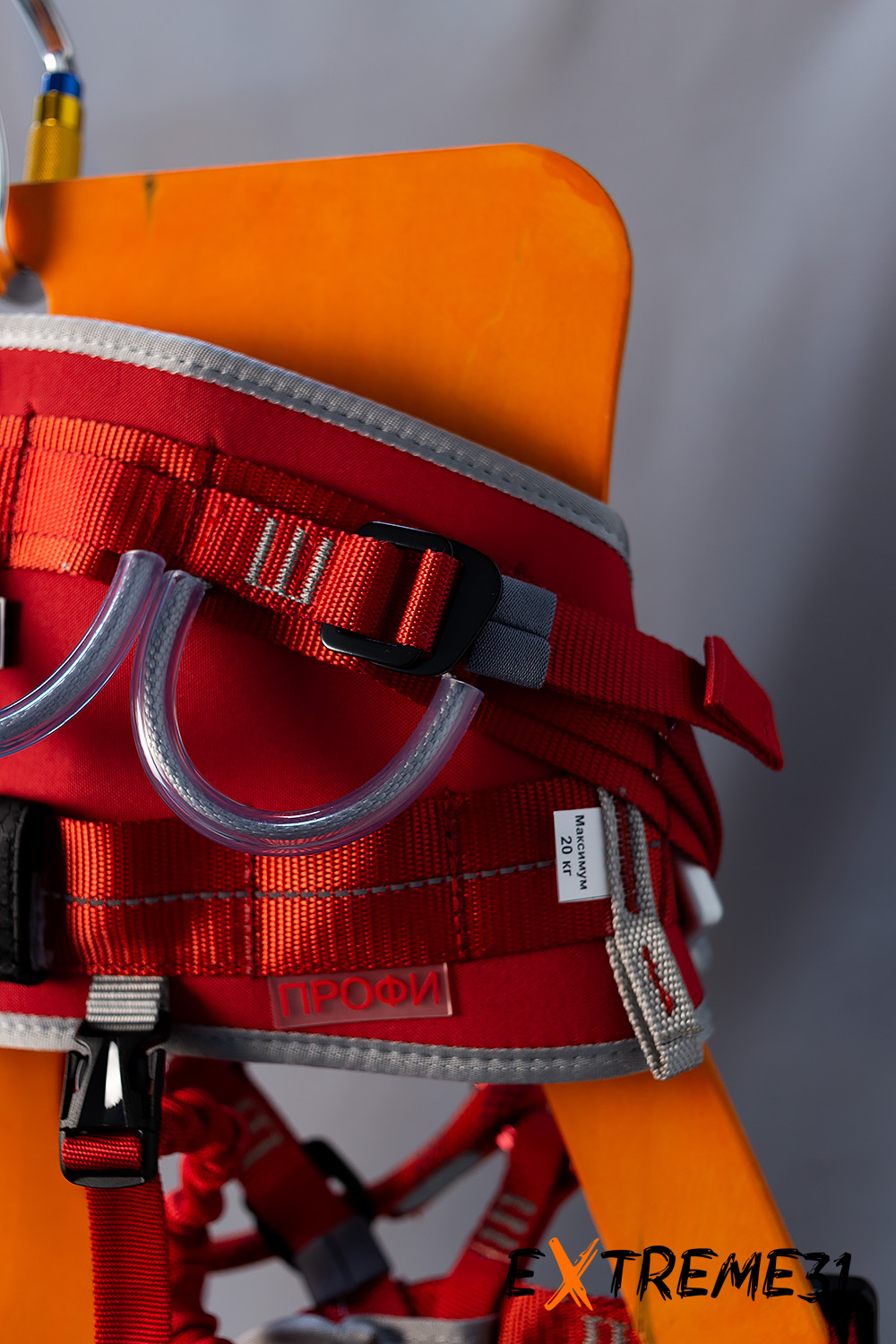 Привязь предусматривает возможность интеграции рабочего сиденья для длительных работ в безопорном пространстве. На поясе расположены петли для развески дополнительного оборудования.