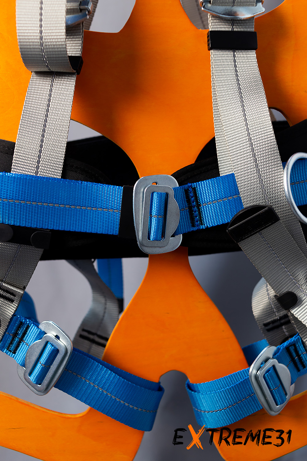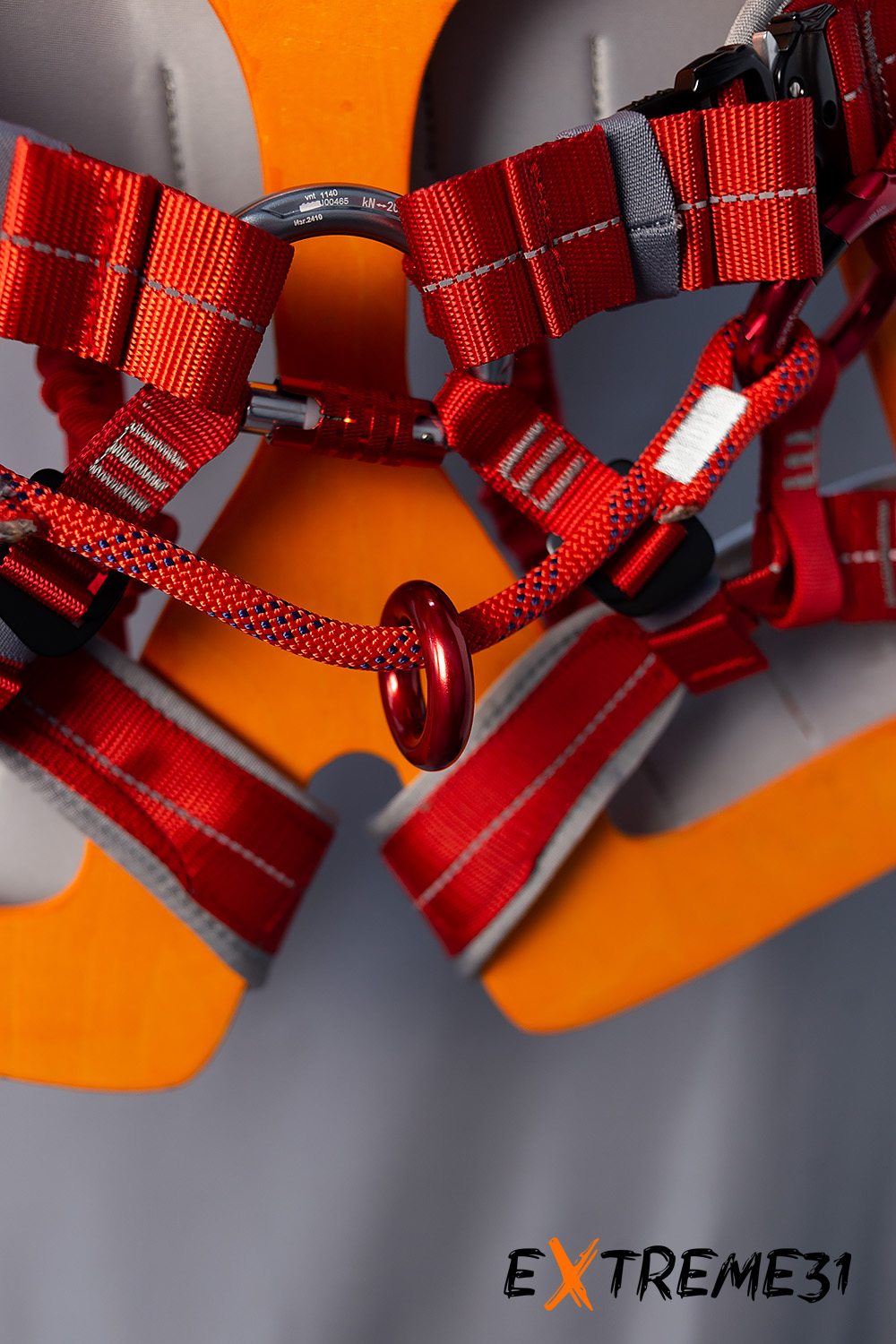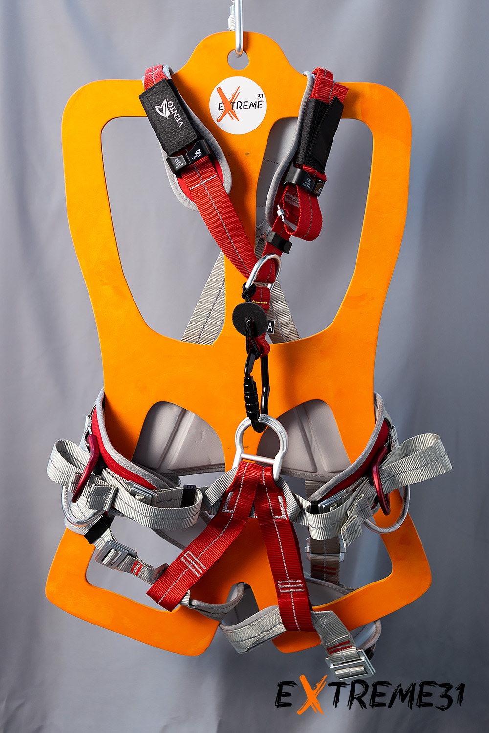 Имеются 2 страховочные точки: на спине и на груди, а также 4 точки для удержания и позиционирования: две боковые, одна сзади на поясе и одна брюшная. Последняя удобна для использования в системах канатного доступа.